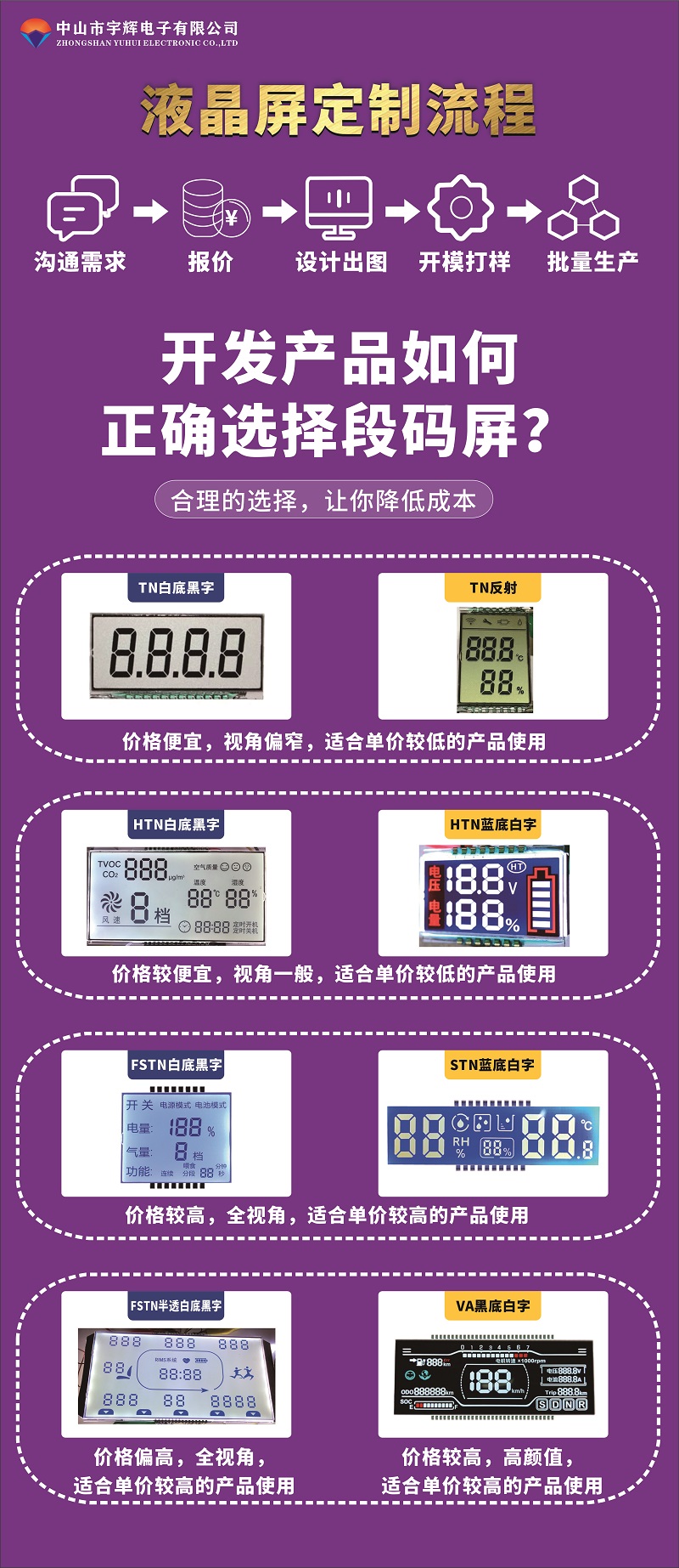 8個8字8位低功耗TN反射LCD液晶顯示斷碼屏